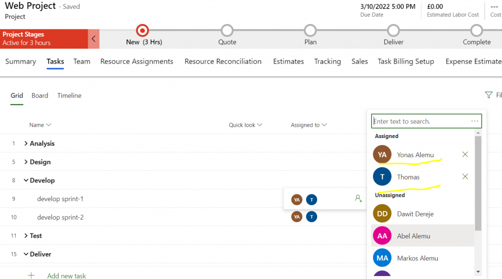 Once tasks are created and team-members are populated, now it’s time to assign task to each team-member. Below is a screenshot from our demo example of web-project.