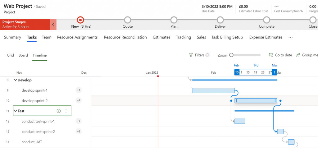 Project Operations has a simplified, drag and drop project scheduling tool. It includes dashboards, task management, scheduling, interactive Gantt charts, and work-breakdown structures.