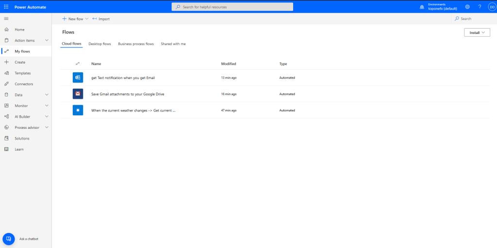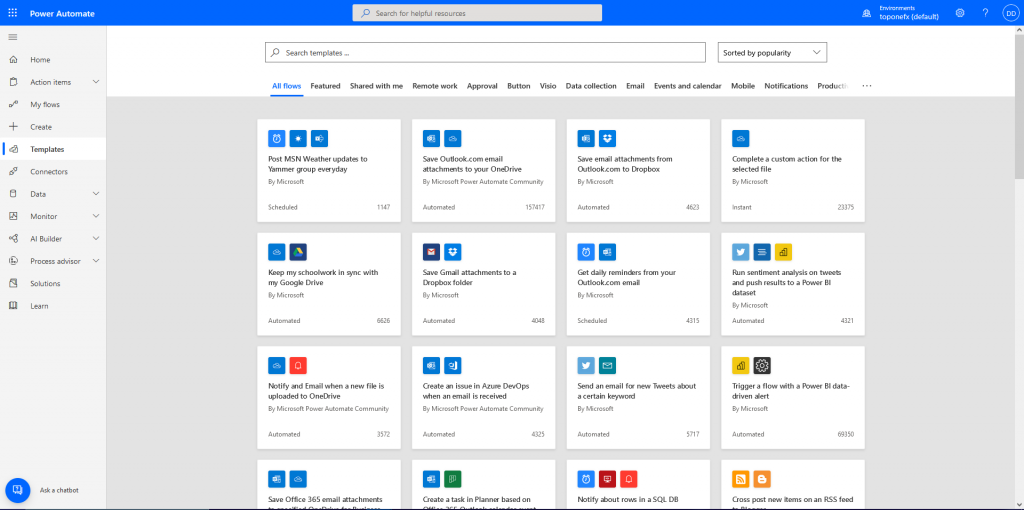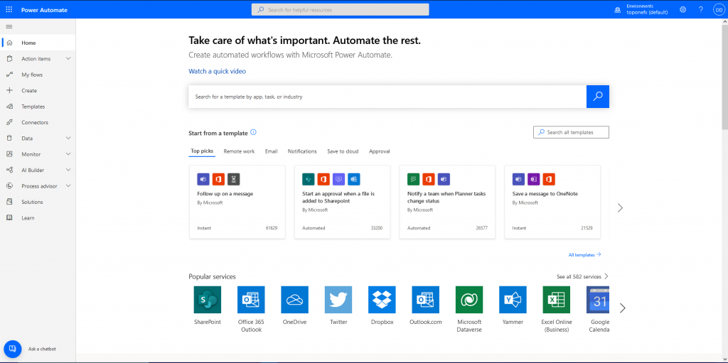 Visit the Power Automate Website https://unitedkingdom.flow.microsoft.com/en-us/ and sign in with an Microsoft account. After that is done the Power Automate Home page will be displayed.