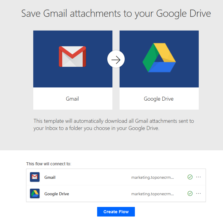 This template will be used for demonstration. Any files attached to a email going to this Gmail account will be automatically saved to a Google Drive account. The user adds the email addresses of the Gmail and Google Drive accounts that the workflow will connect to for the automation to work.