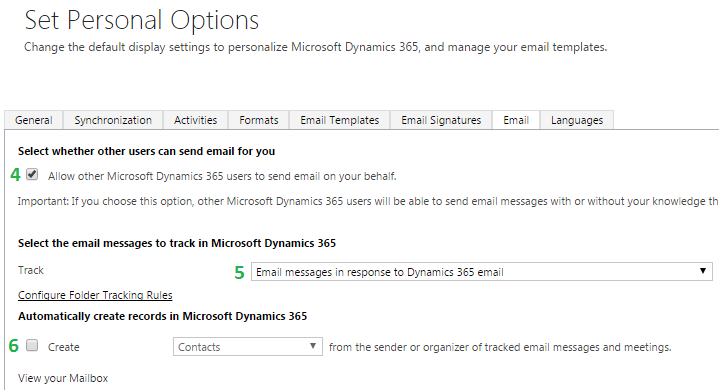 Particularly setting number 5 on my screenshots is very interesting. It is important in tracking emails. Shortly I will write a post about tracking emails related to Case at D365 – a good example to understand tracking emails at CRM.