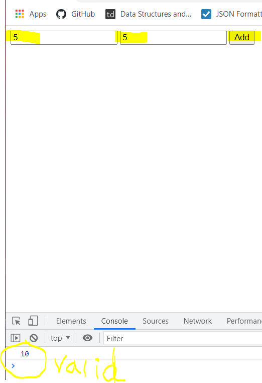 the screenshot below shows simple index.html page with two input filed and button to add the two numbers.